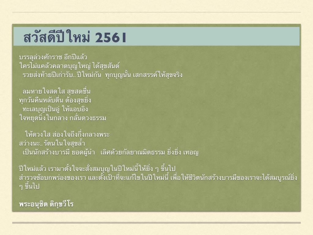 ธรรมอันทรงคุณค่า บุญมากอุปสรรคน้อย บุญน้อยอุปสรรคมาก คนมีบุญมาก..... อุปสรรคชีวิตก็น้อย คนมีบุญน้อย...อุปสรรคชีวิตก็มาก นี่คือความจริงที่ต้องศึกษากันให้ดี เป็นโชคของเราที่ได้รับความรู้นี้จากพระสัมมาสัมพุทธเจ้า เราจึงต้องสั่งสมบุญกันให้มากๆ เข้าไว้ เพราะบุญเป็นบ่อเกิดแห่งความสุขและความสำเร็จ คุณครูไม่ใหญ่ 13 มีนาคม 2550 Laungpor Dhammajayo’s teaching More Merit… Less Obstacles The more merit we have the fewer obstacles we will encounter in life, and vice versa. This is a truth that we should take into consideration. Fortunately, we have a chance to learn the teachings of the Lord Buddha. Therefore, we should accumulate more merit through good deeds because they are the source of our happiness and success March 13 B.E.2550 􀔃􀄁double arrow left􏿿ปลื้มสุด ๆ ทบทวนบุญ "วันคุ้มครองโลก" 􂠁􀅮*􏿿พิธีตักบาตรสามเณรครั้งประวัติศาสตร์ 􂠁􀅮*􏿿พิธีทอดผ้าป่า 􂠁􀅮*􏿿พิธีเปิดม่านบรมจักรพรรดิโบสถ์พระไตรปิฎก https://youtu.be/b7Dr6PoOvi4 A Biography of Venerable Dhammajayo Click here https://www.facebook.com/1634401106881919/videos/1774905512558931/ #บูชามหาปูชนียาจารย์ #สวดธรรมจักร # วิสาบูชา #เอาบุญให้คุณแม่ #ไว้สอนตัวเองวันละนิด #แบ่งปันเป็นธรรมทาน