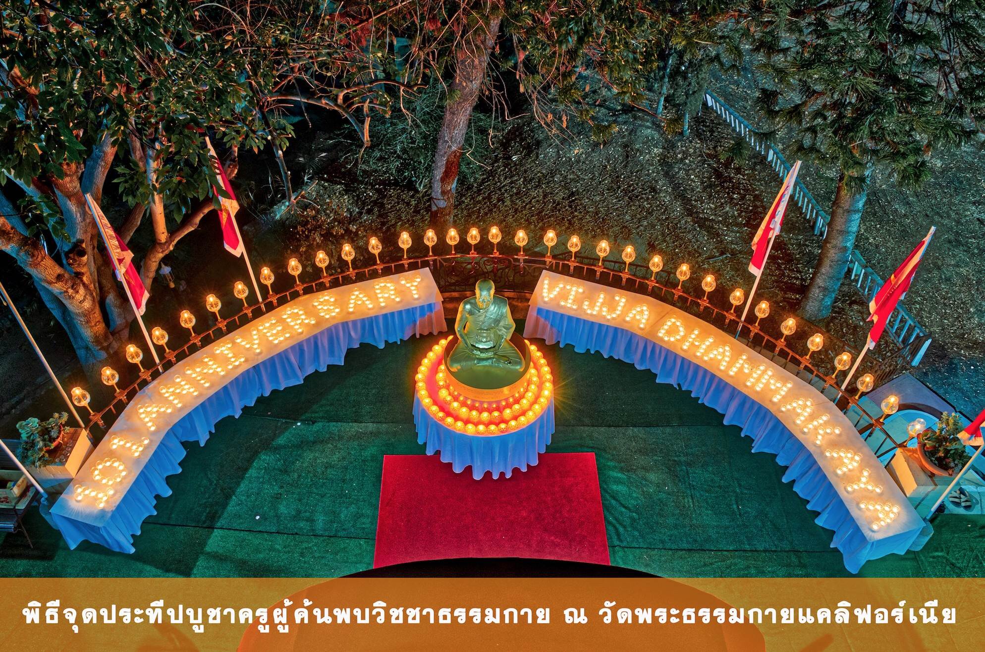 วัดพระธรรมกายแคลิฟอร์เนีย สหรัฐอเมริกา จัดพิธีบูชาครูผู้ค้นพบวิชชาธรรมกาย โดยมีกิจกรรมดังนี้ -พิธีเปิดกรวยสักการะบูชาครูผู้ค้นพบวิชชาธรรมกาย -พิธีวางพานดอกไม้สักการะพระมงคลเทพมุนี หลวงปู่วัดปากน้ำภาษีเจริญ -พิธีวางโคมดอกบัว สักการะหลวงปู่ฯ -พิธีวางโคมประทีปสักการะหลวงปู่ฯ -พิธีทอดผ้าป่าบำรุงวัด -ปฏิบัติธรรมเนสัชชิกังคัง ตั้งแต่ ๒๓.๐๐ น. ถึง ๖.๐๐ น.ของวันรุ่งขึ้น มีสาธุชนลูกหลานหลวงปู่วัดปากน้ำภาษีเจริญมาร่วมพิธีกันอย่างพร้อมหน้า มีพระภิกษุ ๑๕ รูป สาธุชน ๑๒๕ ท่าน ต่างปลื้มปีติในบุญครั้งนี้เป็นอย่างยิ่ง อนุโมทนาบุญและเอาบุญมาฝากครับ วันอาทิตย์ ที่ ๒๓ กันยายน พ.ศ. ๒๕๖๑